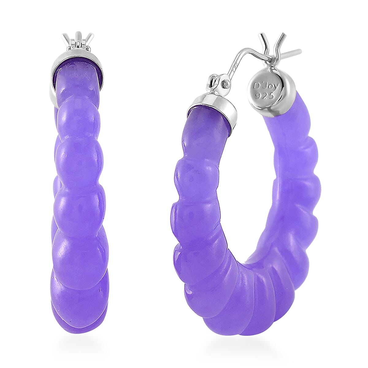 Purple Jade (D) 45.00 ctw Carved Scalloped Earrings in Rhodium Over Sterling Silver