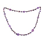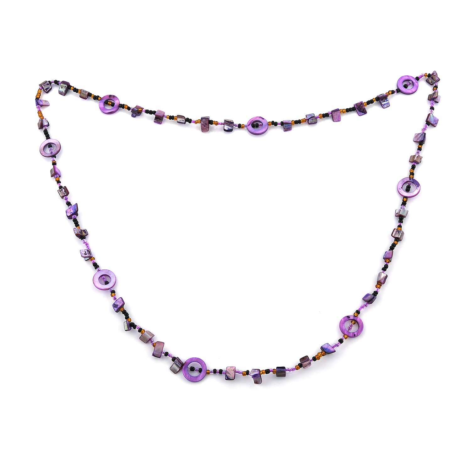 Experience a 40-inch seed beads necklace meticulously crafted with purple resin beads and multi-colored seed beads. This multi color beads necklace showcase an array of various size and shape beads that blend harmoniously.