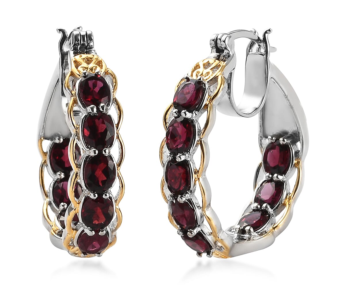 Pyrope Garnet Earrings in Vermeil Yellow Gold and Platinum Over Sterling Silver 6.40 ctw