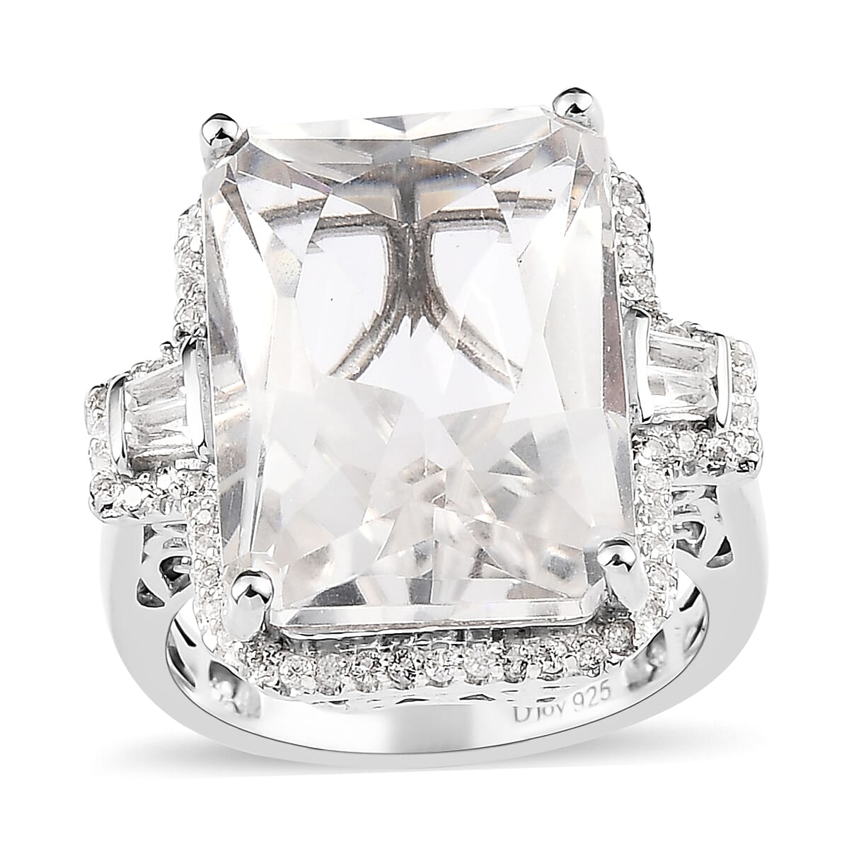 Radiant Cut White Topaz Ring in Platinum Over Sterling Silver (Size 9.0) 18.60 ctw