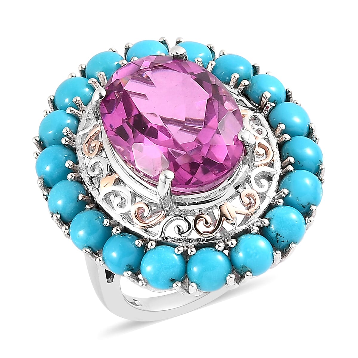Radiant Orchid Quartz (Triplet) and Sleeping Beauty Turquoise Halo Ring in Vermeil RG and Platinum Over Sterling Silver (Size 6.0) 14.65 ctw