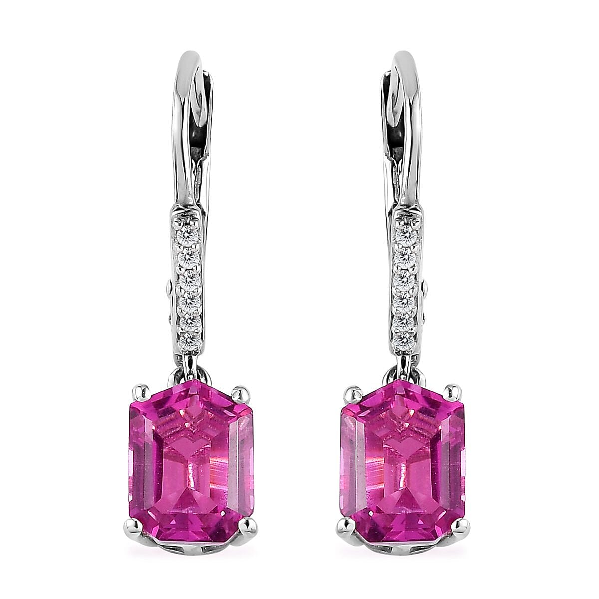 Radiant Orchid Quartz (Triplet) and White Zircon Lever Back Earrings in Platinum Over Sterling Silver 3.15 ctw