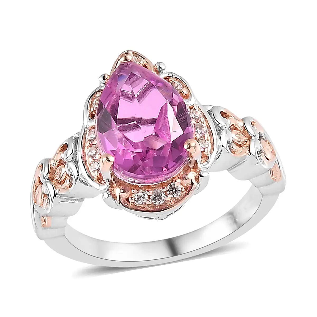 Radiant Orchid Quartz (Triplet) and White Zircon Ring in Vermeil RG and Platinum Over Sterling Silver (Size 8.0) 2.35 ctw