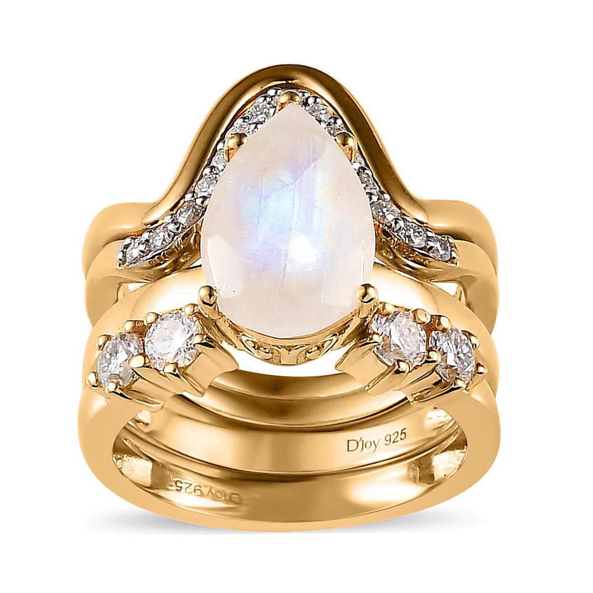 Rainbow Moonstone and Moissanite Set of 4 Stackable Ring in Vermeil Yellow Gold Over Sterling Silver (Size 7.0) 3.20 ctw