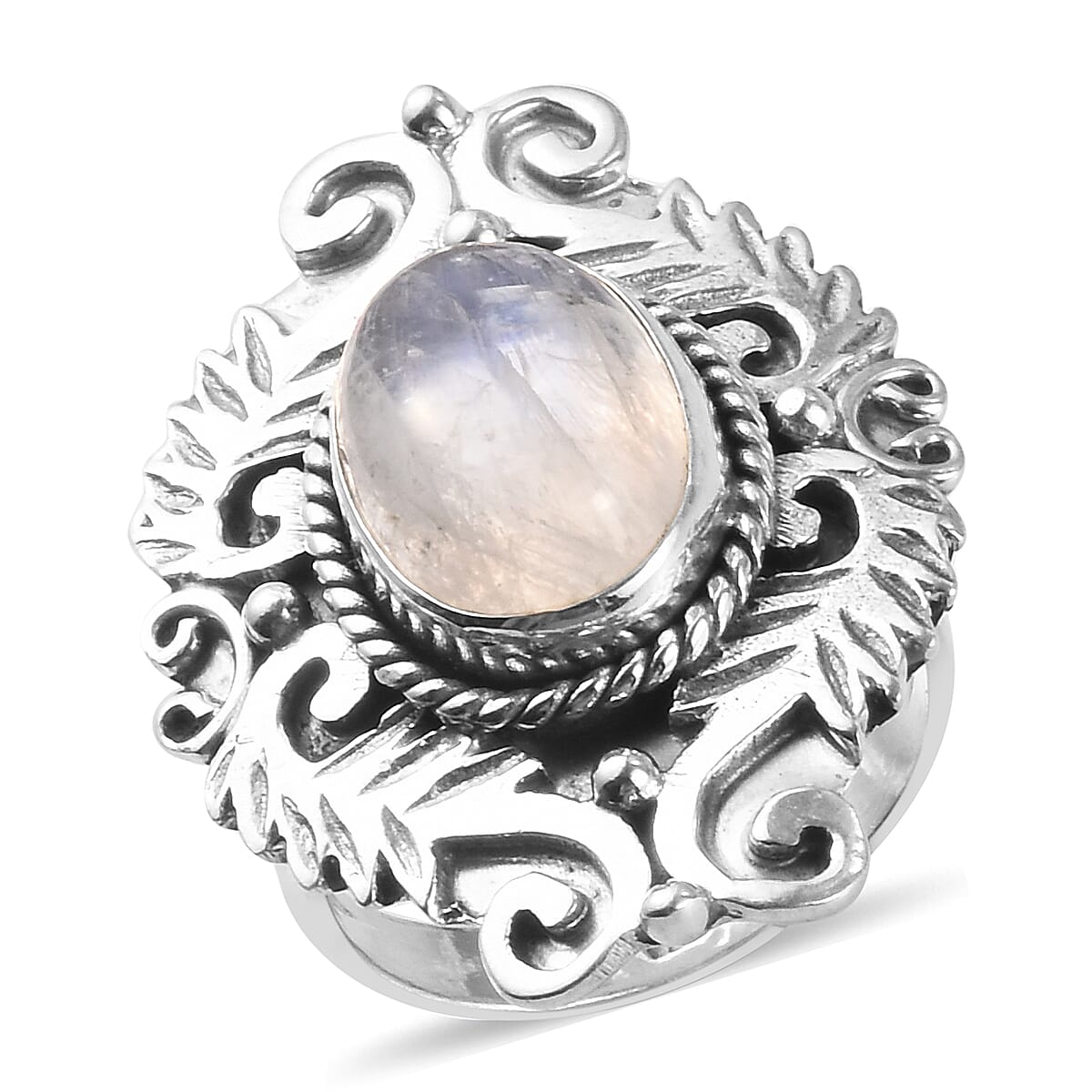Rainbow Moonstone Ring in Platinum Over Sterling Silver (Size 8.0) 8.70 Grams 7.30 ctw