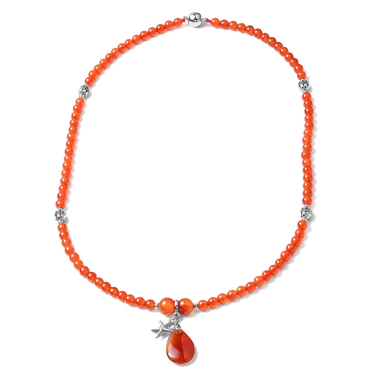 Red Agate 174.50 ctw Beaded Multi Wear Necklace with Starfish Charm in Silvertone 24 Inches