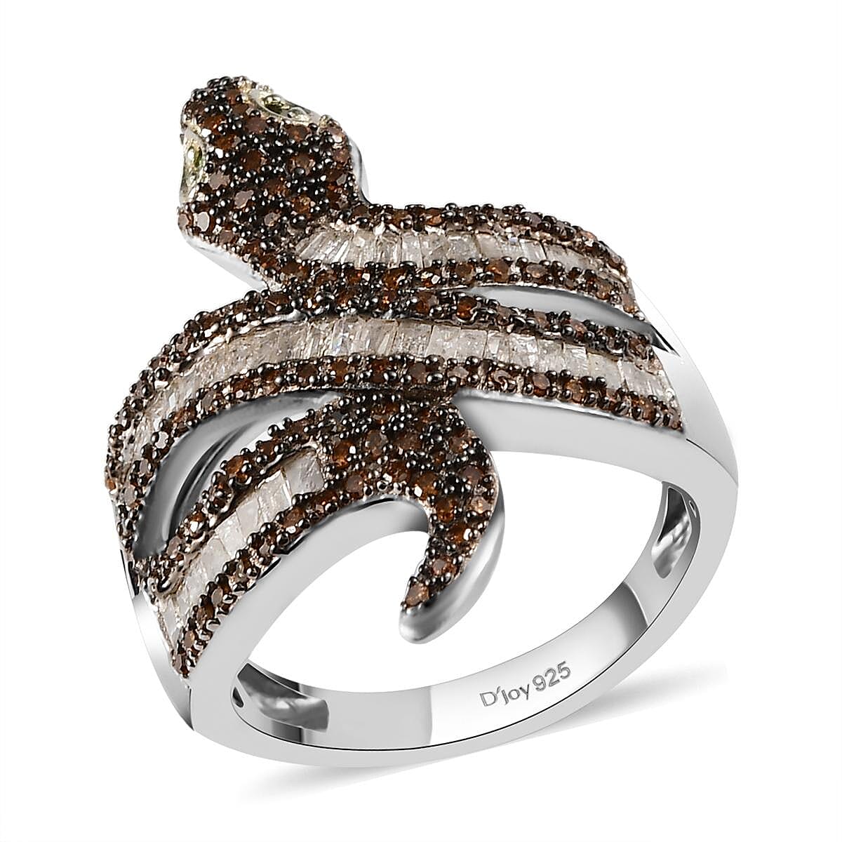 Red and Green Diamond, Diamond Snake Ring in Rhodium and Platinum Over Sterling Silver (Size 7.0) 1.00 ctw