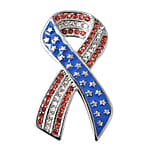 Red and White Austrian Crystal American Flag Ribbon Brooch in Stainless Steel, Tarnish-Free, Waterproof, Sweat Proof Jewelry