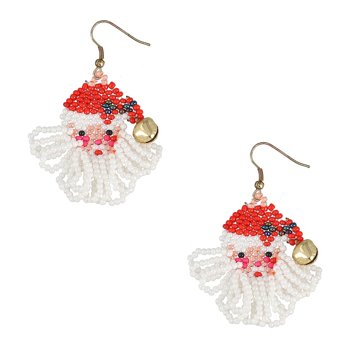 Red & White Seed Beaded Santa Claus Christmas Theme Earrings