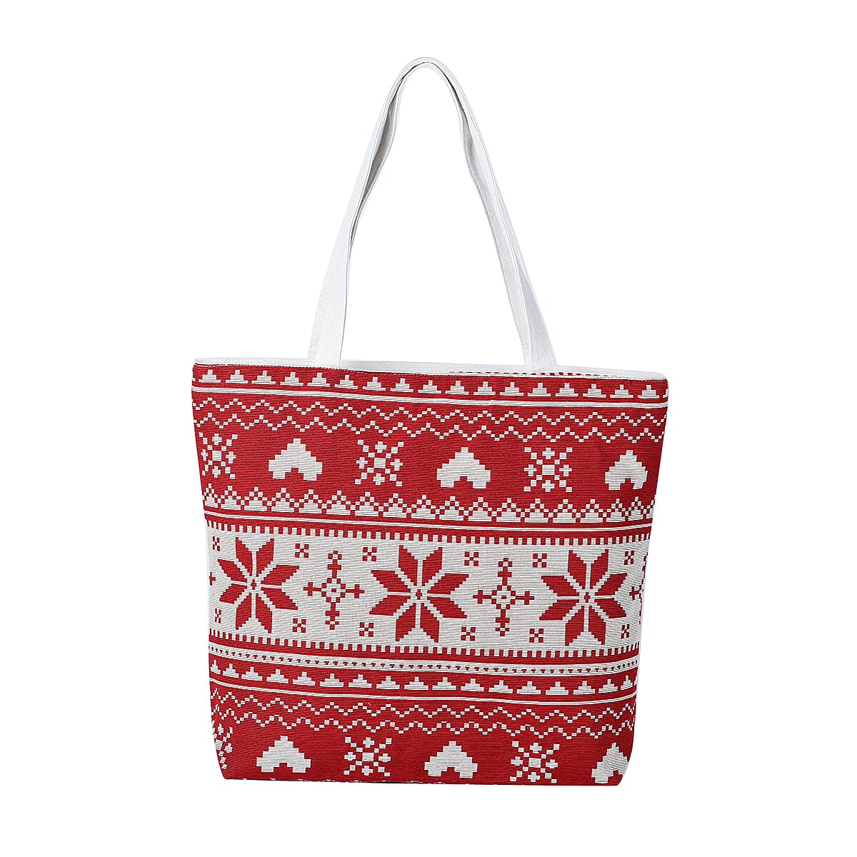 Red and White Snow Patterns Jute and Polyester Tote Bag (16"13.4"x3.6"x14.4")