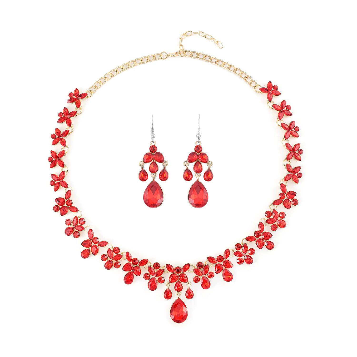 A. Elegant dangle earrings paired with a sparkling crystal necklace create a sophisticated ensemble suitable for formal and casual occasions.