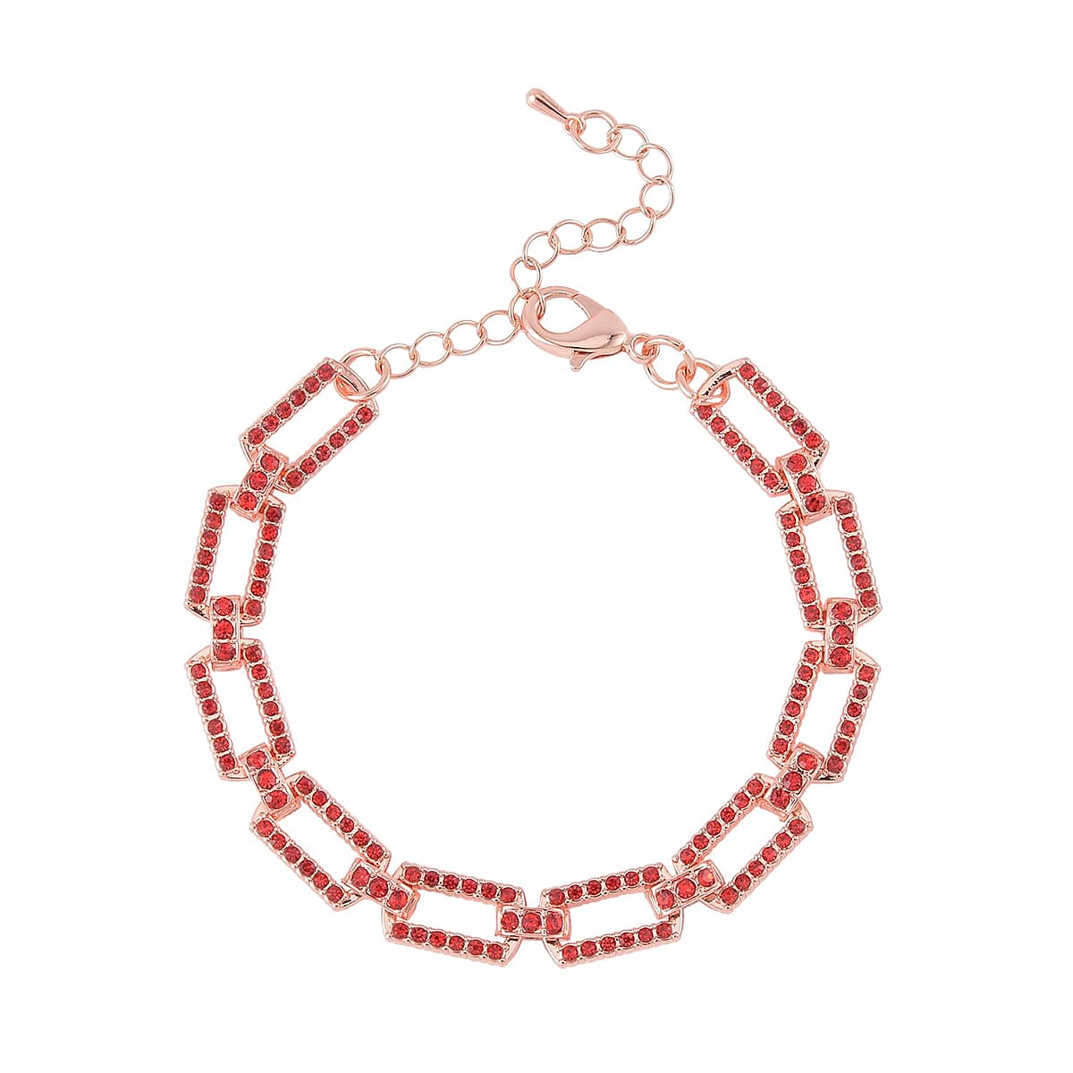 Red Austrian Crystal Link Bracelet in Rosetone (7.50-9.5In)