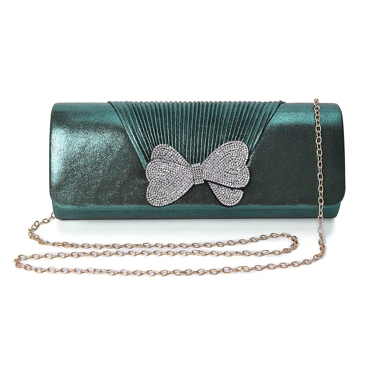 Red Carpet Collection - Green, Magic Color Bow Evening Clutch with Detachable Shoulder Strap