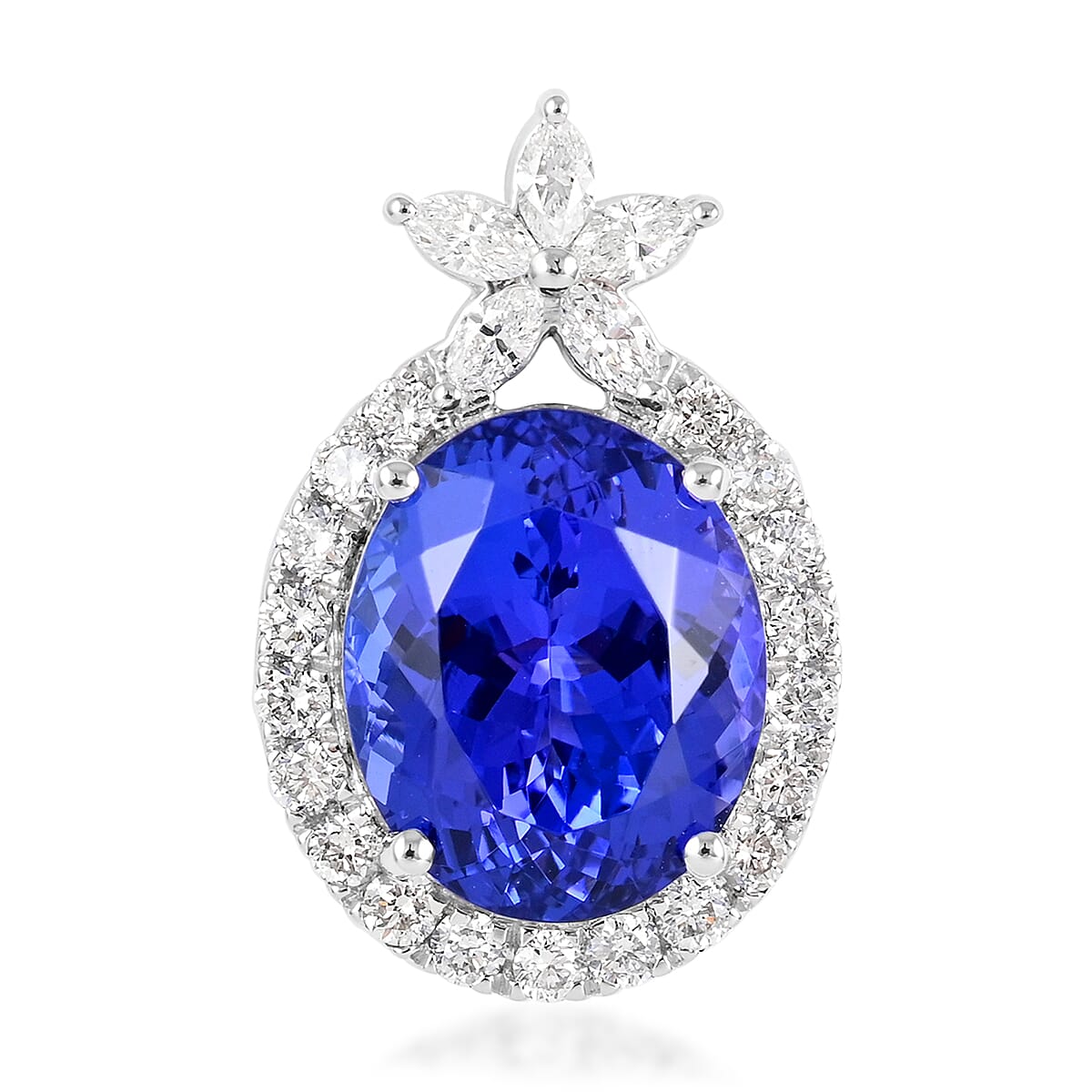 RED CARPET COLLECTION Certified and Appraised Rhapsody 950 Platinum AAAA Tanzanite and E-F VS Diamond Pendant 3.50 Grams 4.40 ctw