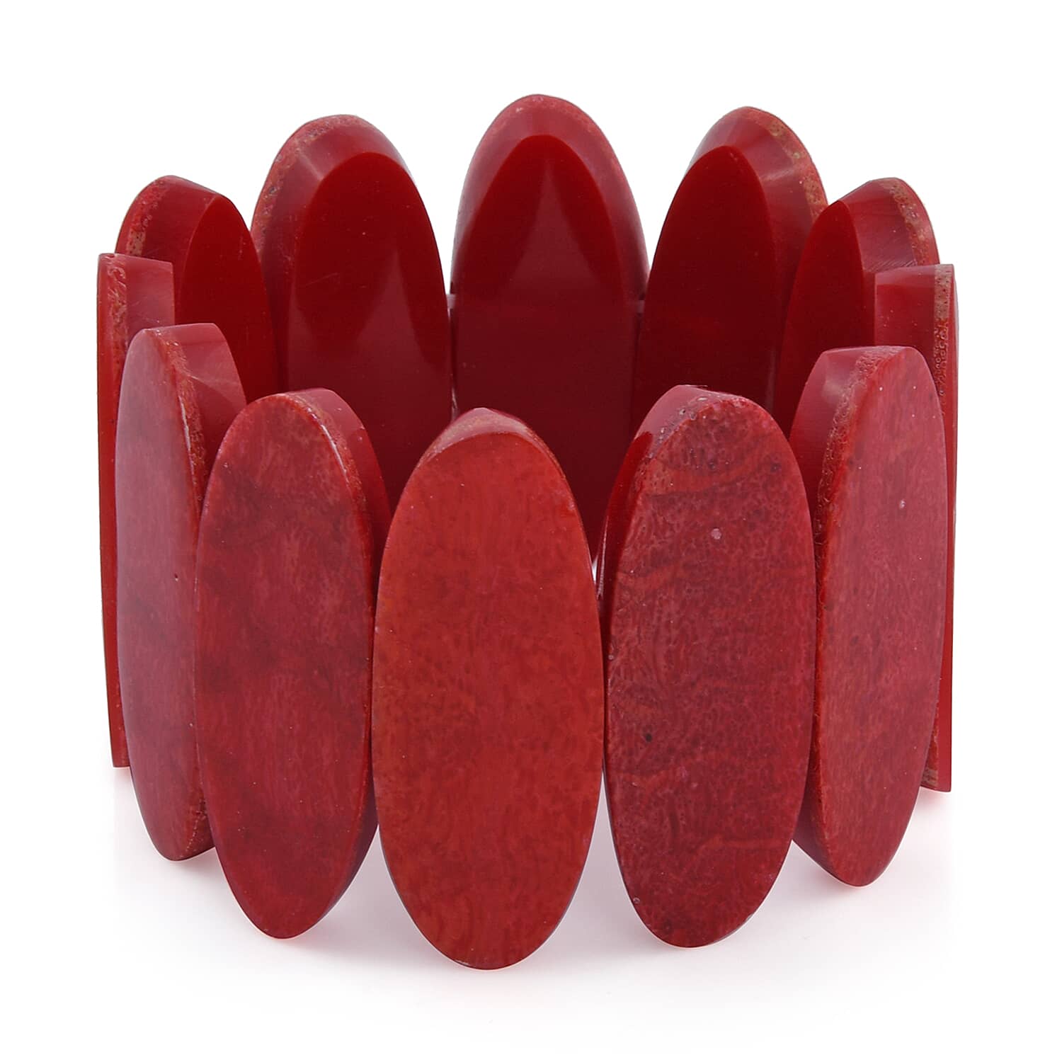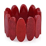 Red Coral Inlay Stretch Bracelet with Matching Color Resin (7.50 in)