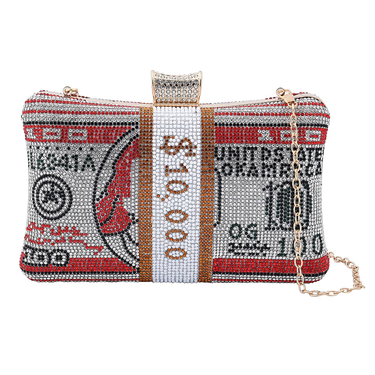 Red Crystal Dollar Shape Clutch Bag for Women with Detachable Chain Strap | Women Purse | Designer Bags | Ladies Purse | Handbags for Women