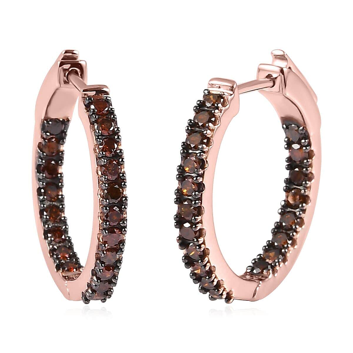 Red Diamond Inside Out Hoop Earrings in Vermeil Rose Gold Over Sterling Silver 1.50 ctw