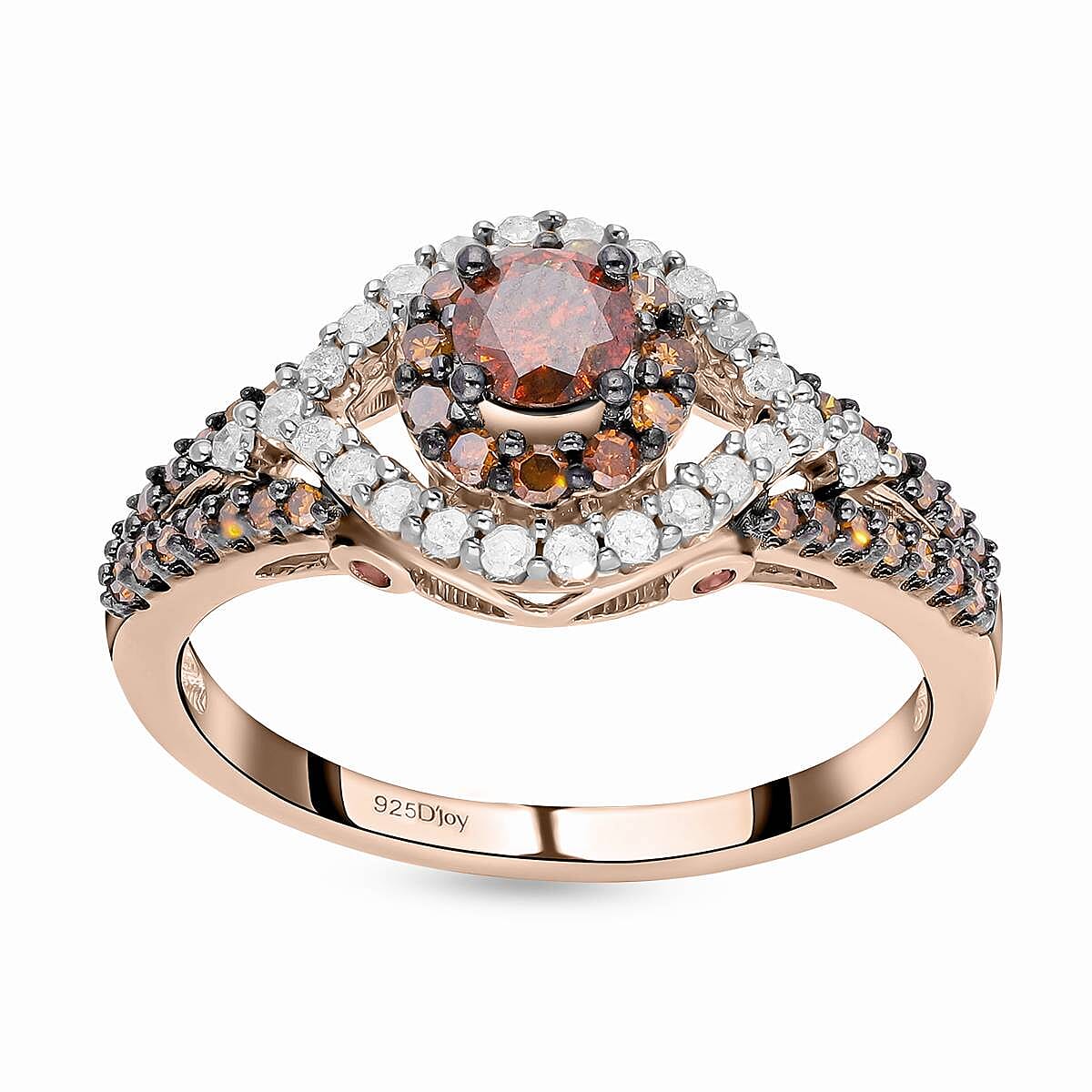 Red Diamond (IR), Diamond Ring in Rhodium & Vermeil RG Over Sterling Silver (Size 9.0) 1.00 ctw