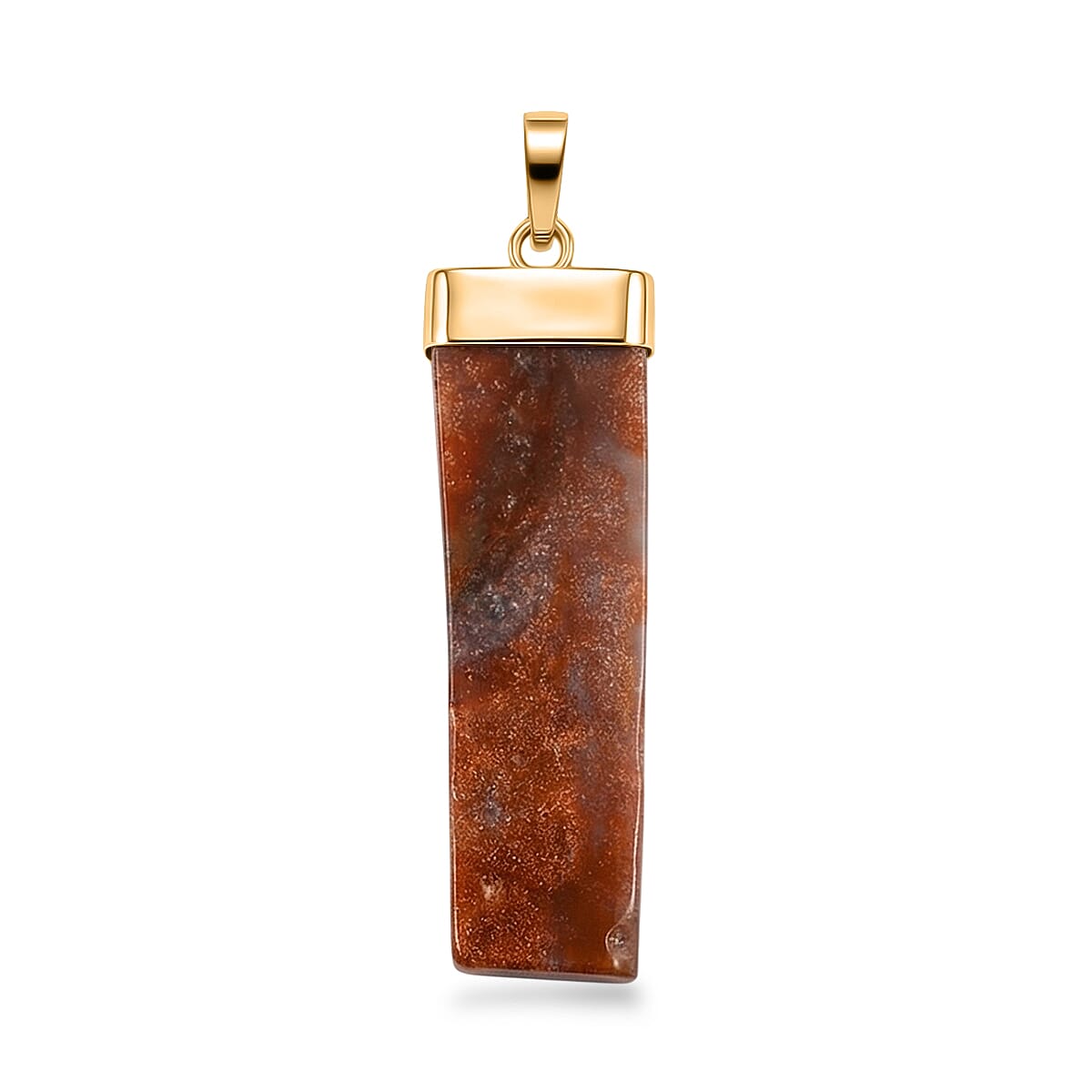 Red Drusy Agate 36.00 ctw Rectangle Pendant in Goldtone with Stainless Steel Necklace 20 Inches