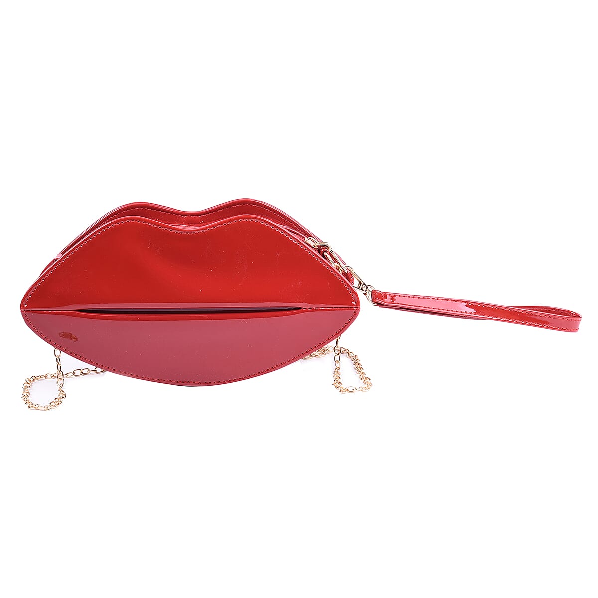 Red Faux Leather Iconic Lips Clutch Bag with Shoulder Strap