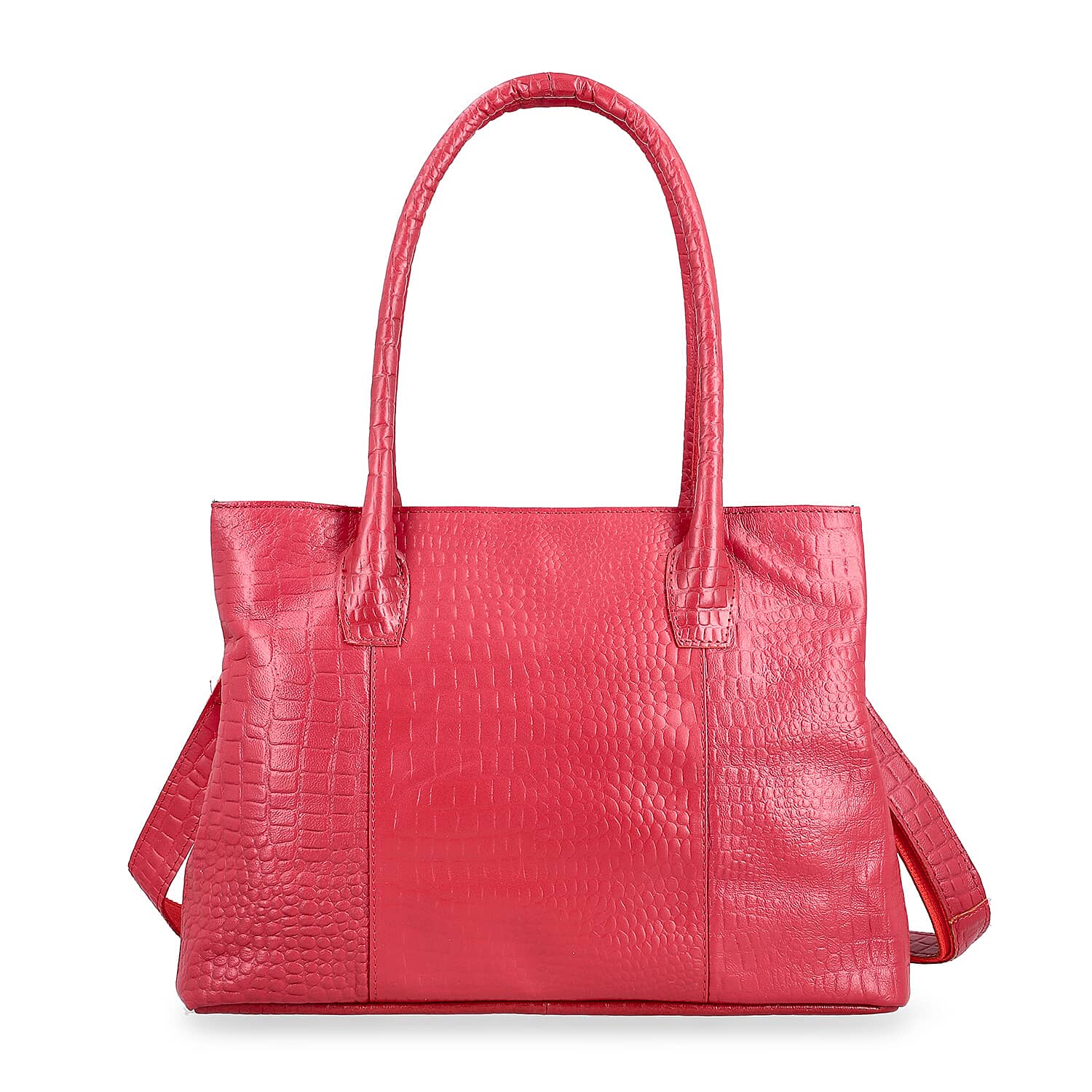 Red Genuine Leather Croco Embossed Shoulder Bag with Adjustable Shoulder Strap