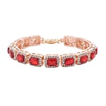 Red Glass and Austrian Crystal Tennis Bracelet in Rosetone (7-9In)