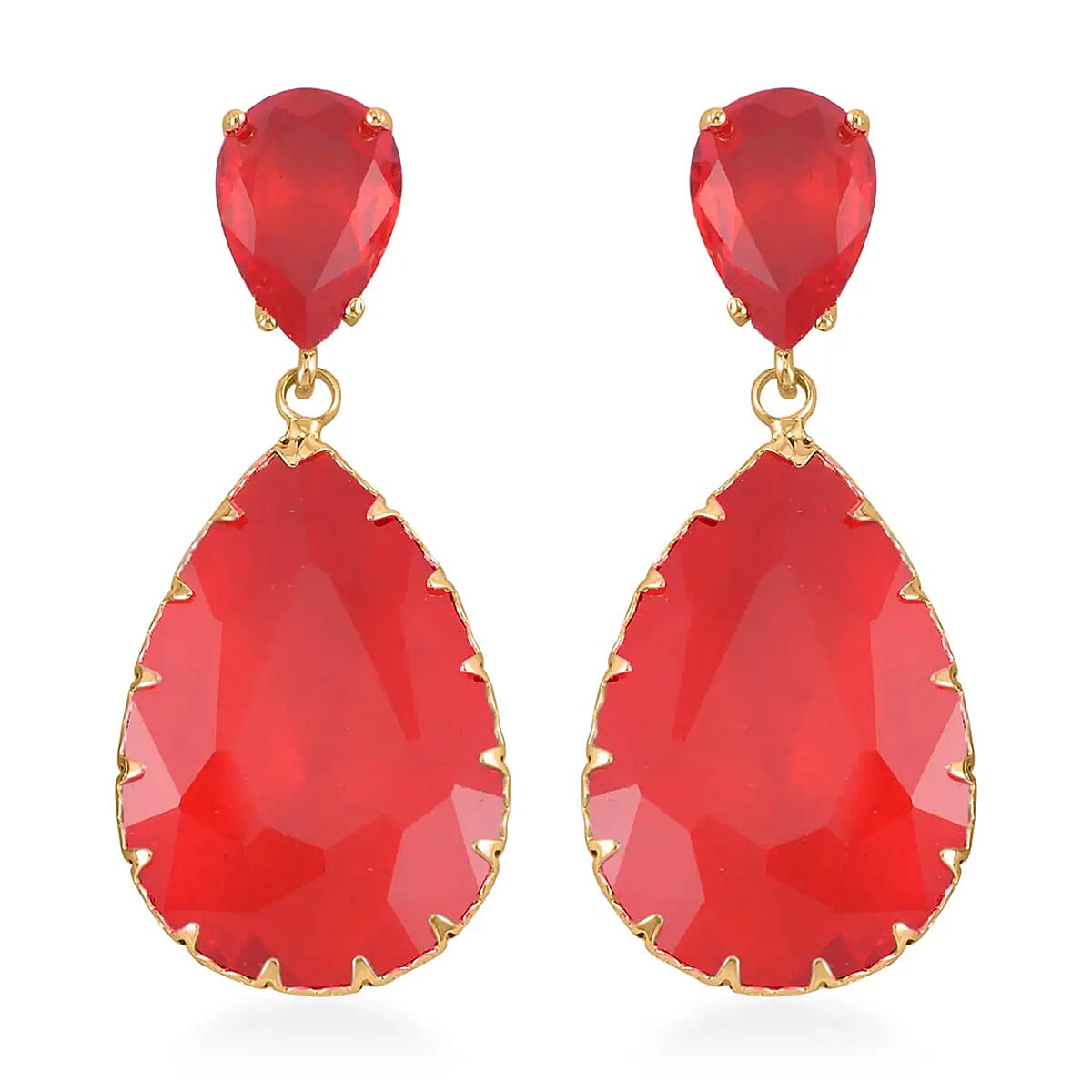 Dazzle and enchant with our exquisite glass drop earrings. Adorned with pear-shaped gemstones, these earrings exude sophistication and grace. The invertedly placed gemstones in prong settings capture light beautifully, making them the perfect choice for any occasion.