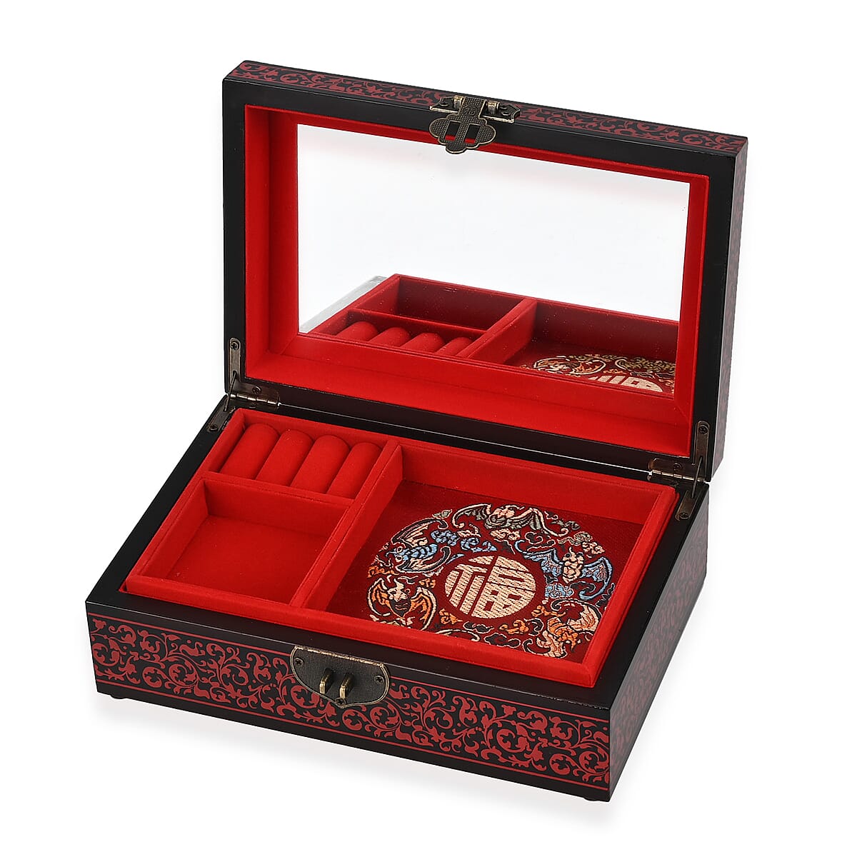 Red Ground with Peony 2 Layer Jewelry Box with Antique Metal Closure