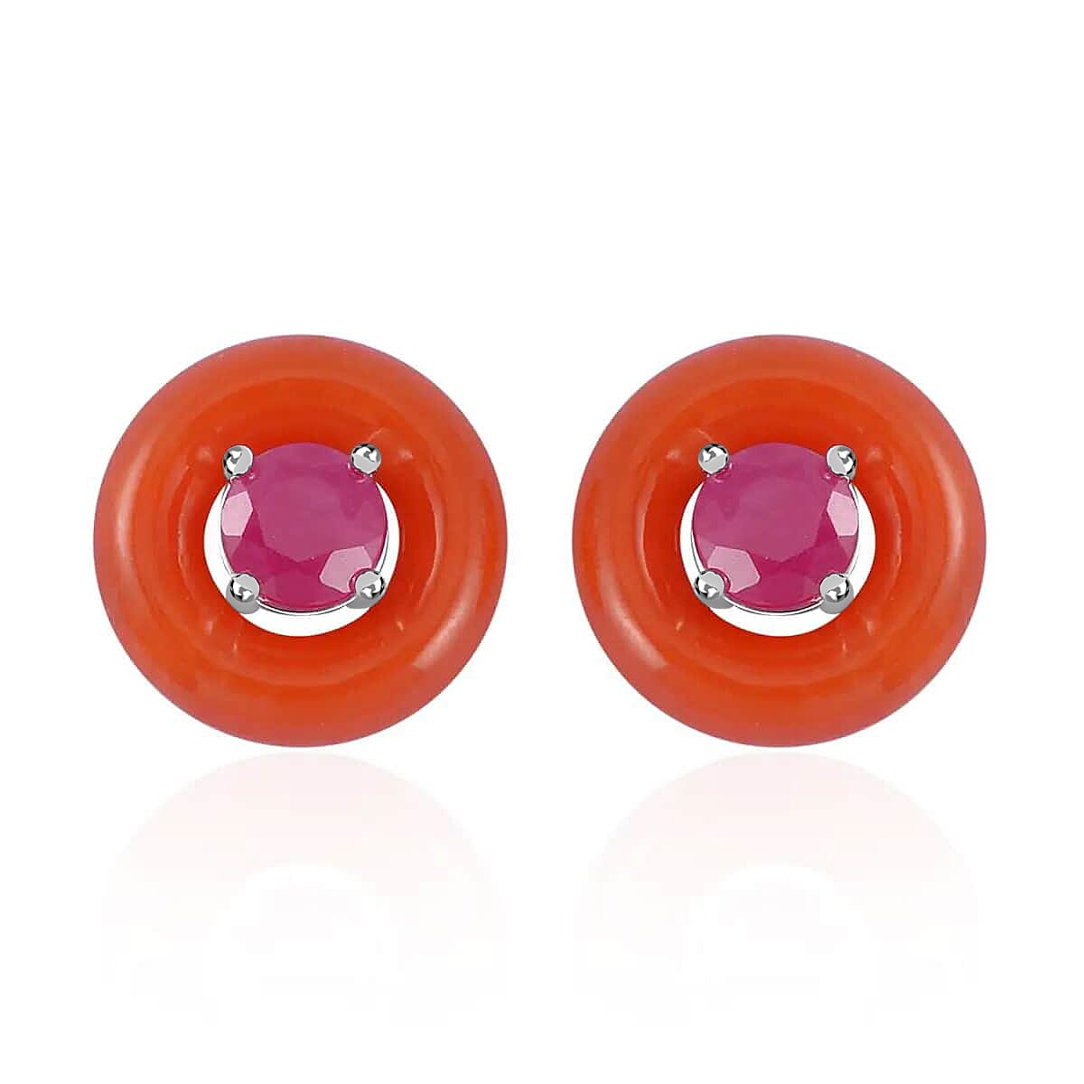 Red Jade (D) 19.30 ctw Jacket Earrings, Niassa Ruby (FF) Jacket Stud Earrings, Rhodium Over Sterling Silver Earrings, Jade Jewelry, Ruby Earrings