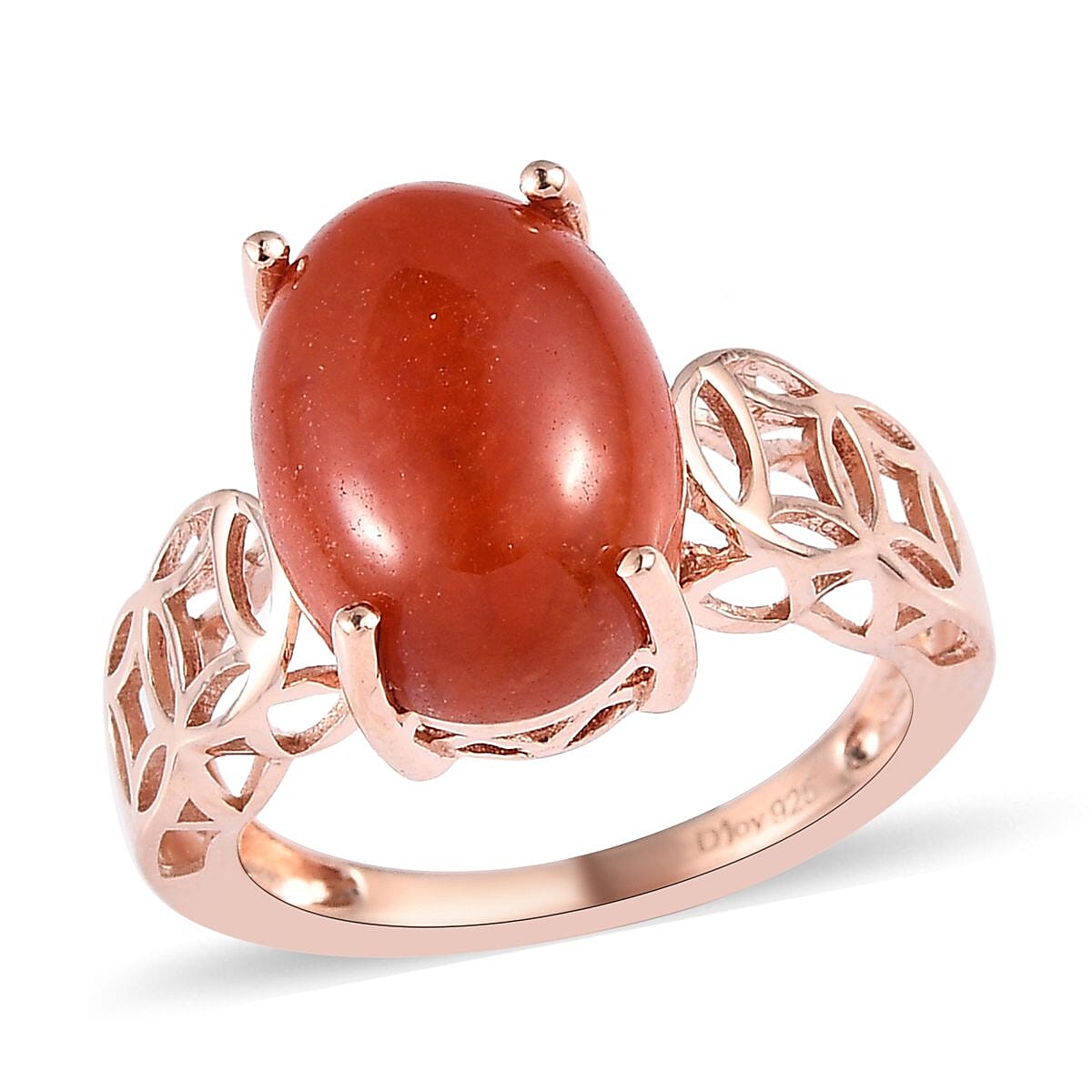 Red Jade (D) Solitaire Chinese Coin Symbol Ring in Vermeil Rose Gold Over Sterling Silver (Size 8.0) 7.65 ctw