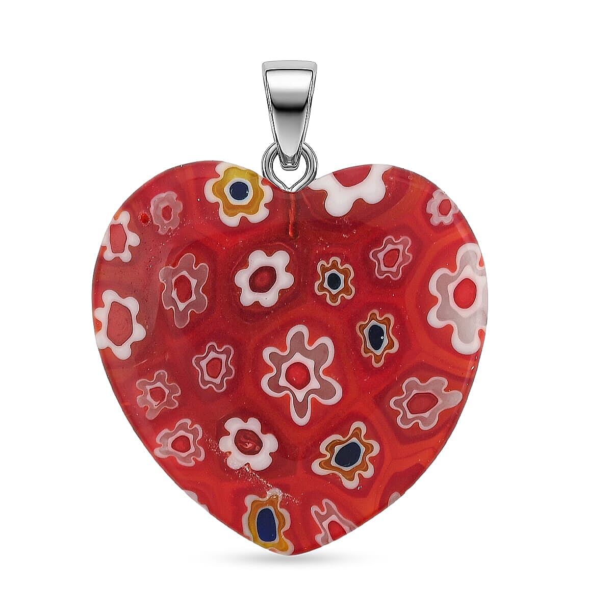 Red Rainbow Murano Style Heart Pendant in Silvertone with Stainless Steel Necklace (20 Inches)