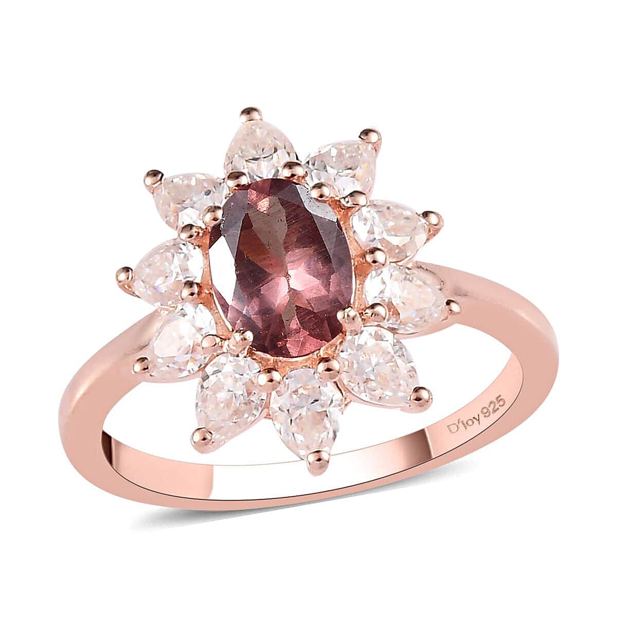 Red Rose Apatite and Moissanite Sunburst Ring in Vermeil Rose Gold Over Sterling Silver (Size 6.0) 2.65 ctw