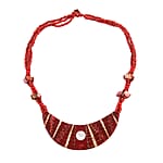 Red Seed Beaded, Moon Shell Multi Strand Necklace 22 Inches