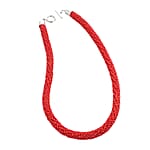 Red Seed Beaded Necklace 20 Inches in Silvertone