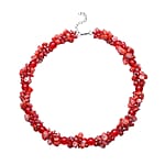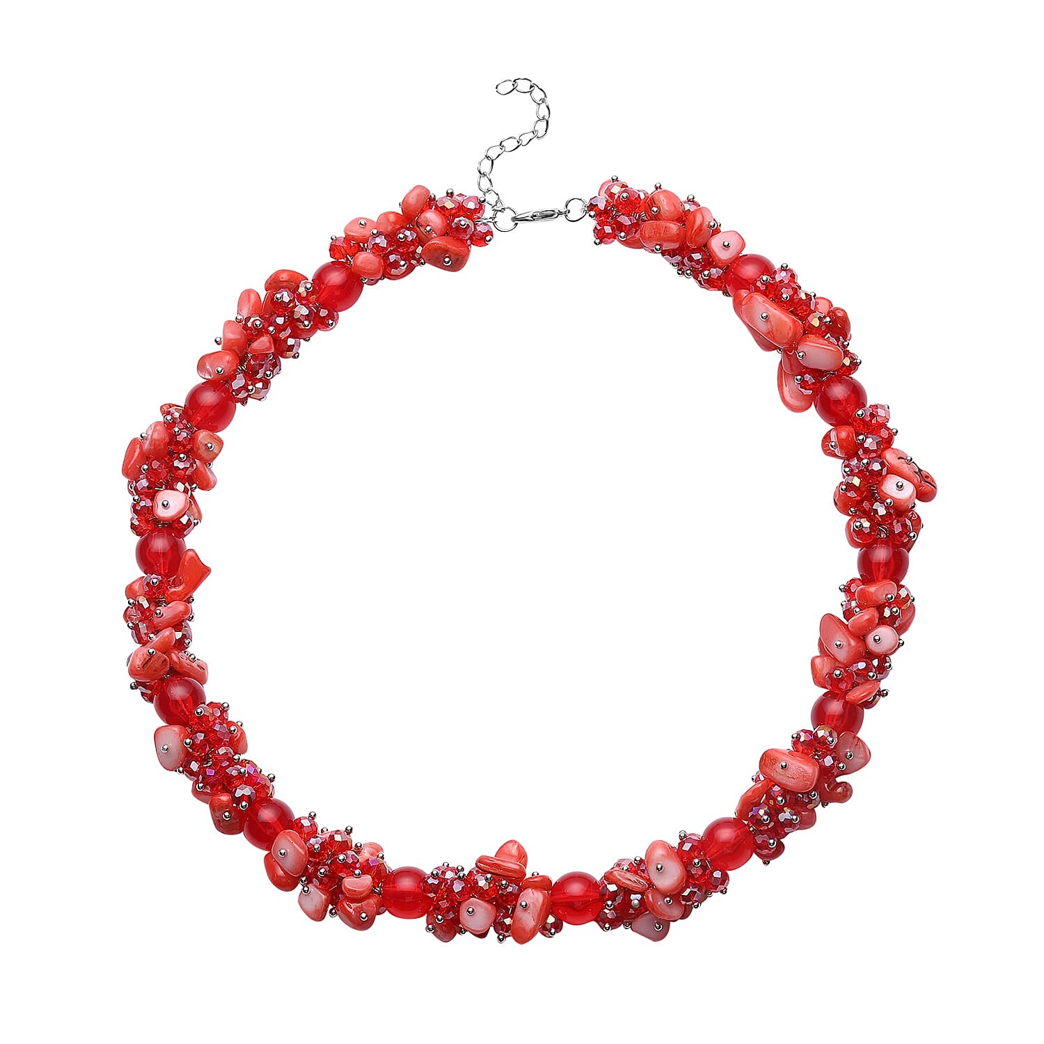 Red Shell and Faceted Beaded Necklace 20-23 Inch in Silvertone