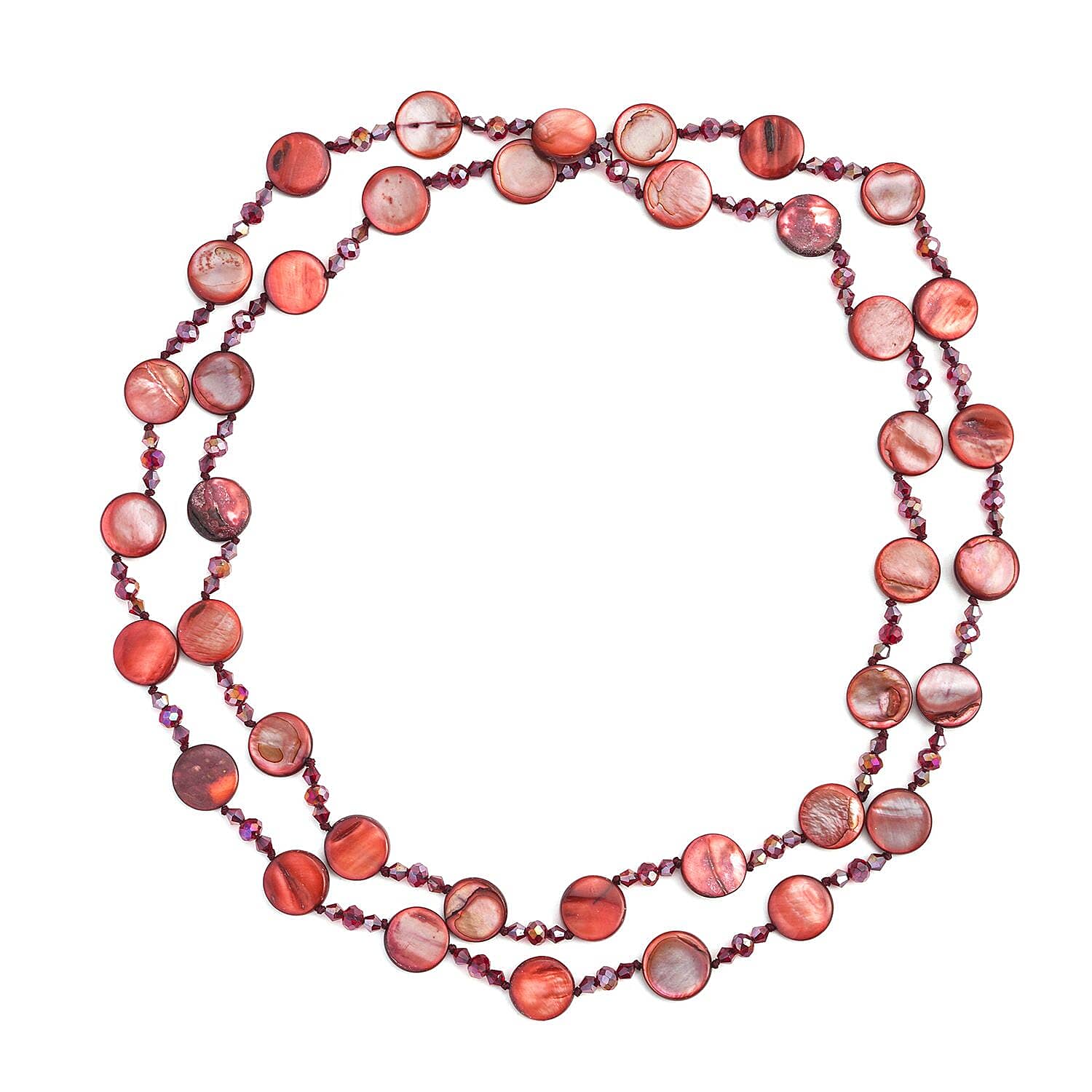 Red Shell Pearl Coin and Red Glass Beaded Necklace 47 Inches