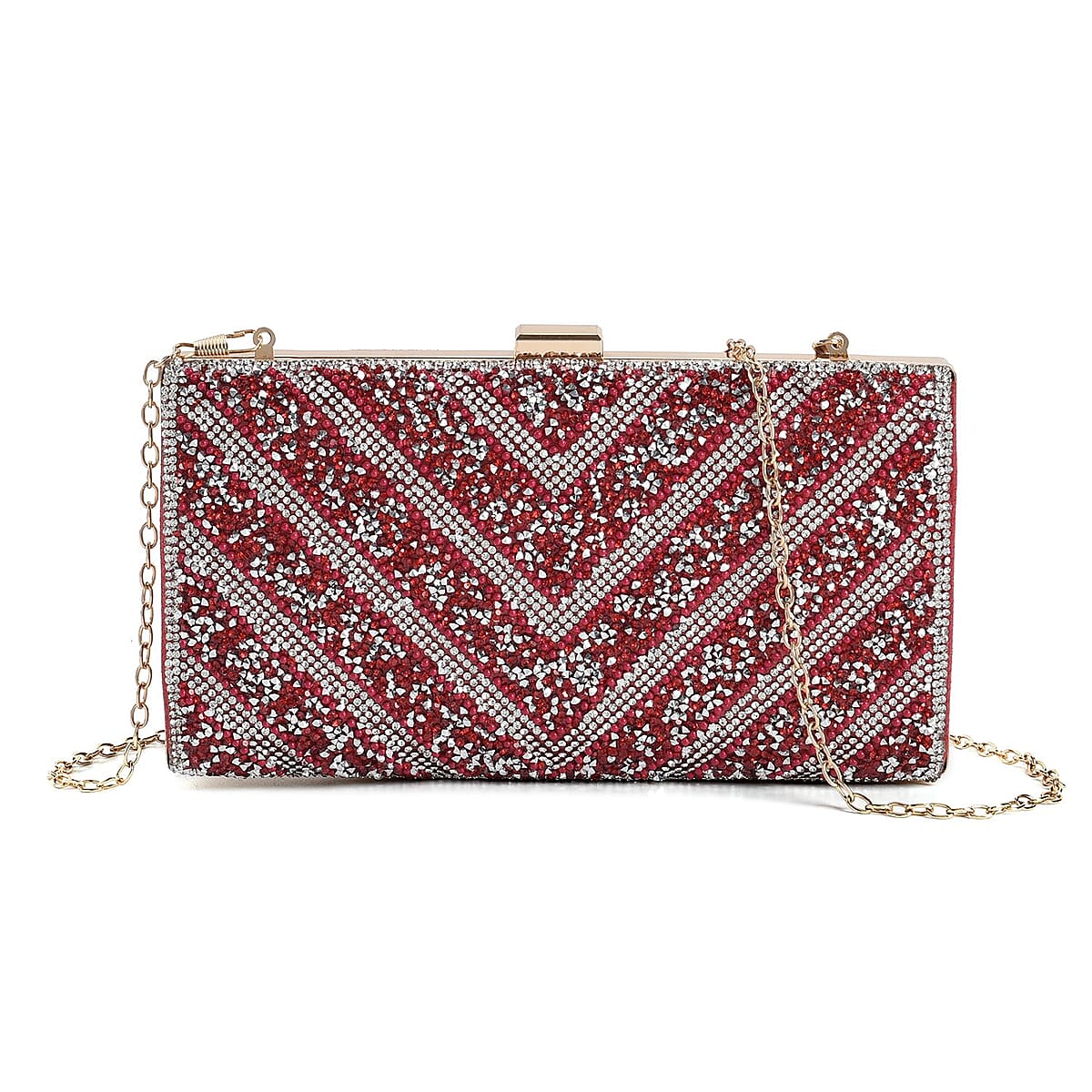 Red Sparkling Clutch Bag with Chain Strap