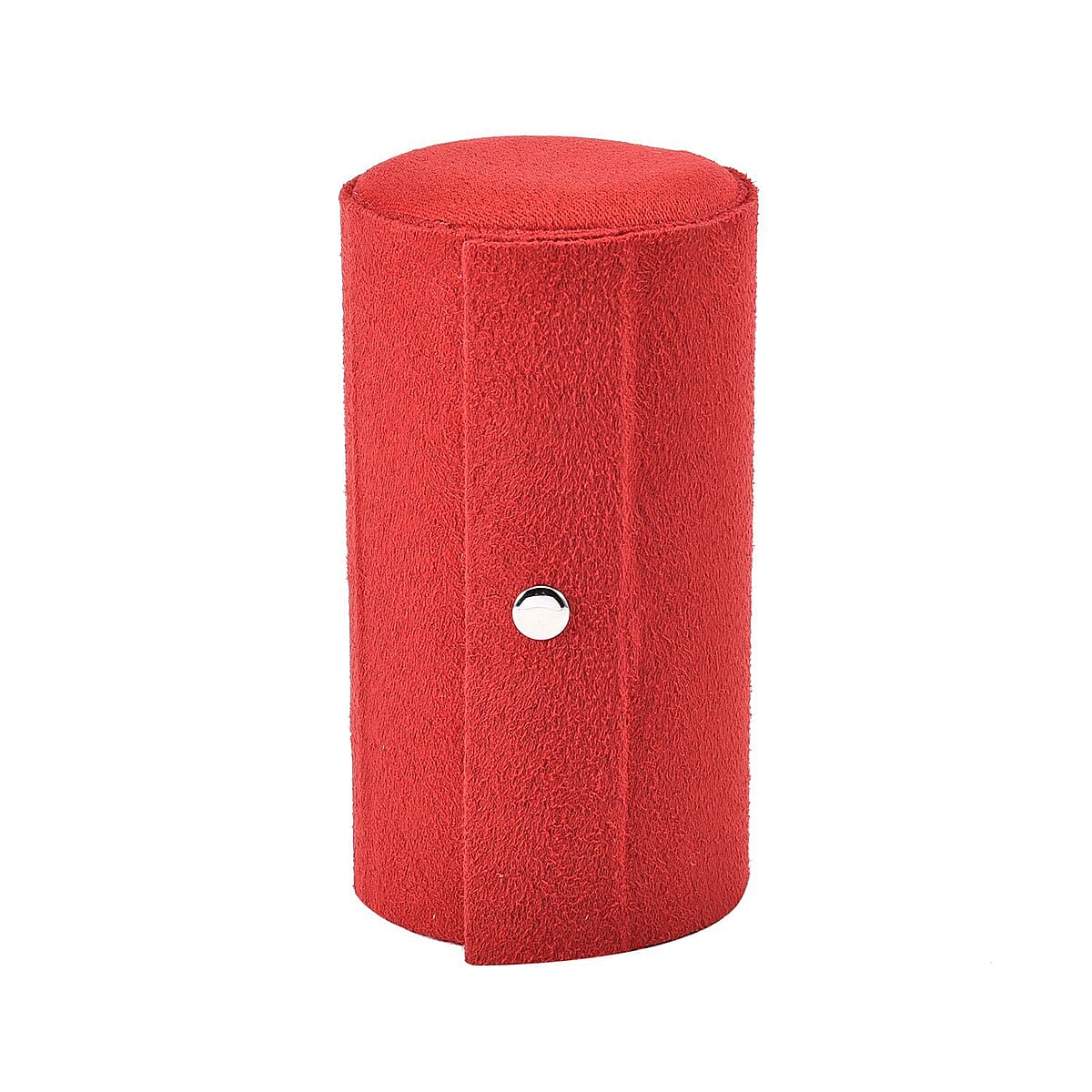 Red Velvet Three Layer Cylinder Shape Jewelry Box with Top Cap and Snap Button Closure