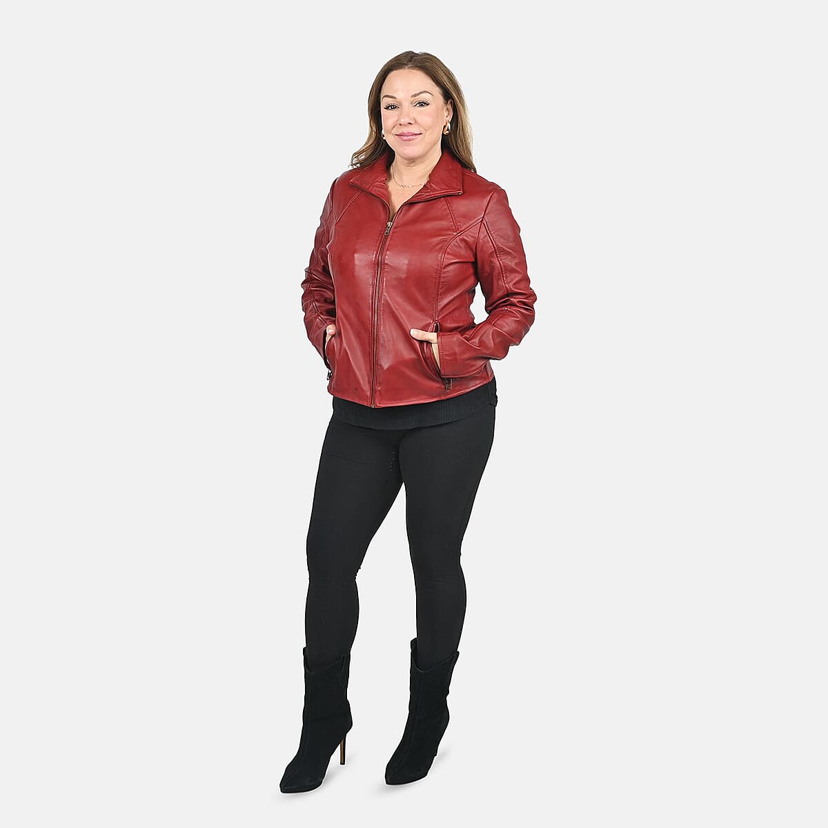 Red Wax Genuine Sheep Leather Jacket with Two Side Pockets - L