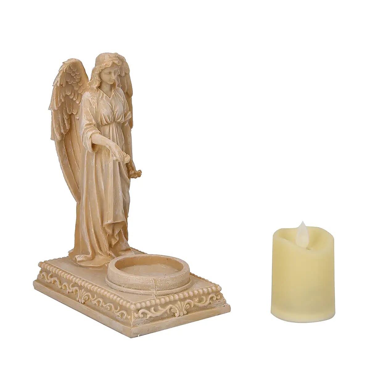 Resin Praying Angel Decor with Flameless LED Candle (Powered by CR2032 Lithium Cell Battery)