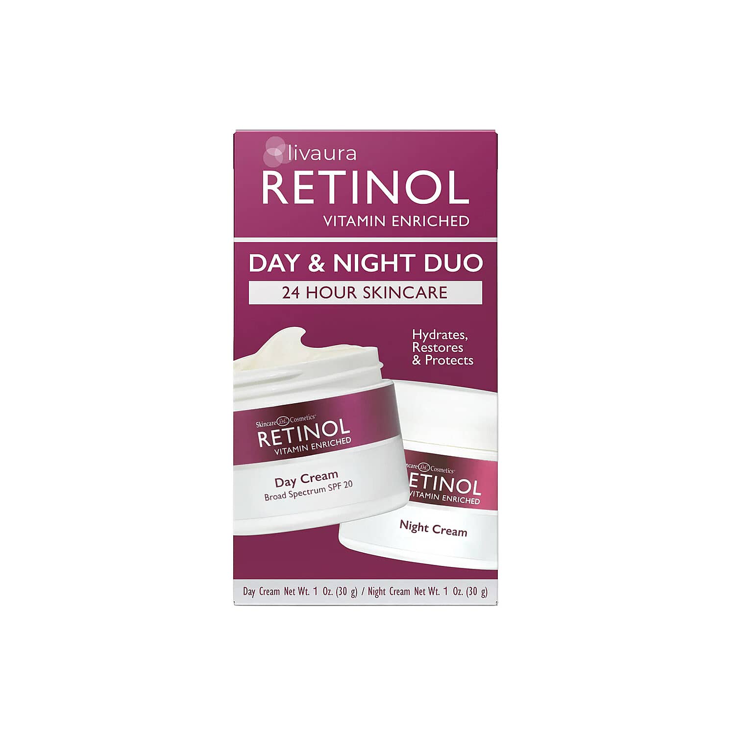 Reveal youthful skin with this Retinol vitamin-enriched day & night duo. This vitamin-enriched skincare works around the clock for visible results. The anti-aging skincare duo targets fine lines and wrinkles continuously. You'll feel more confident as your complexion appears renewed daily.