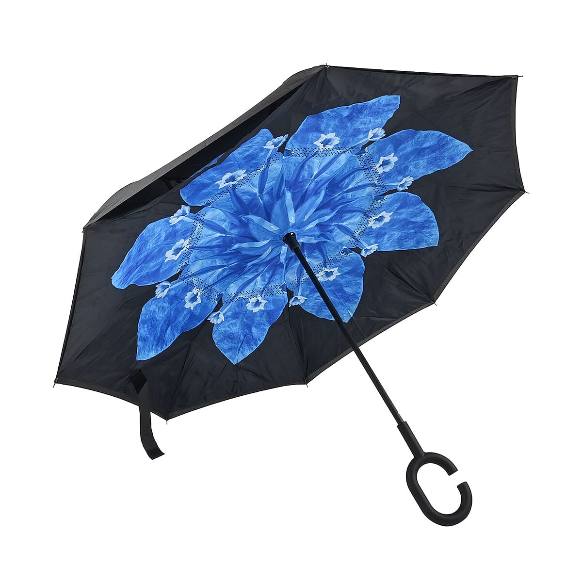 Get ready to stay dry and stylish with the reversible umbrella with C shaped handle. This innovative umbrella is designed with a unique C-shaped handle, making it easy to carry and freeing up your hands for other activities. The portable umbrella features a double-layered canopy that is both windproof and waterproof, keeping you dry and comfortable in even the most extreme weather conditions. The sun umbrella is also designed to be self-standing, making it easy to store and keeping you dry when you need to put it down. Its ergonomic design also ensures a comfortable grip, reducing strain on your wrist and making it easy to carry for extended periods. Whether you're running errands, commuting to work, or just out for a stroll, this rain umbrella will keep you dry and looking your best.