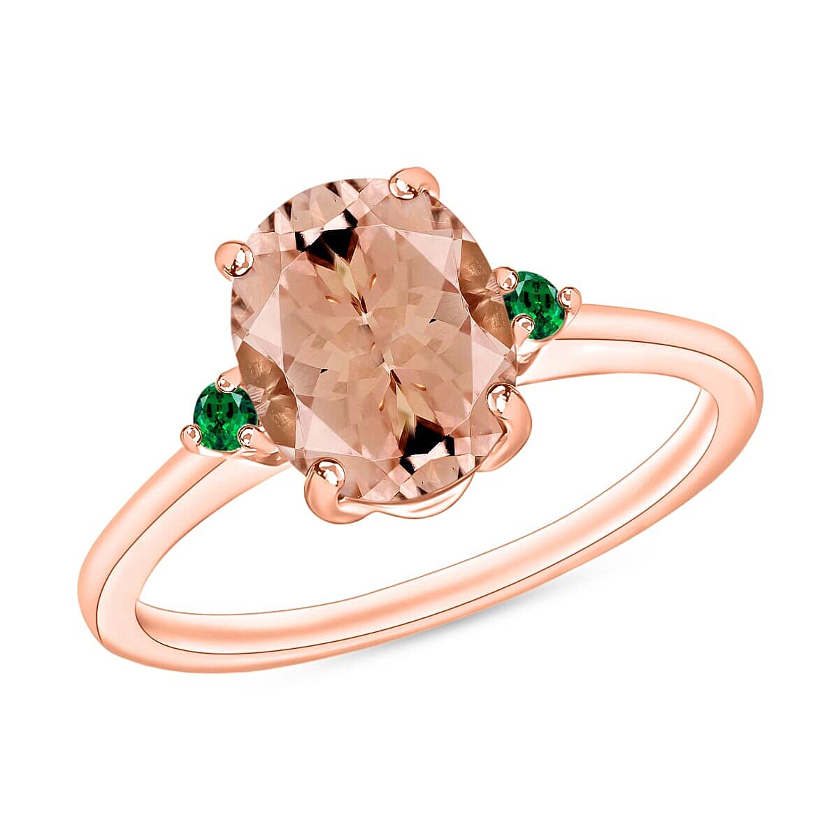 Shine brilliantly with this morganite ring in durable metal. The peach morganite glows beautifully beside lush green Colombian emeralds. You'll love how this elegant piece reflects refined taste and individuality.