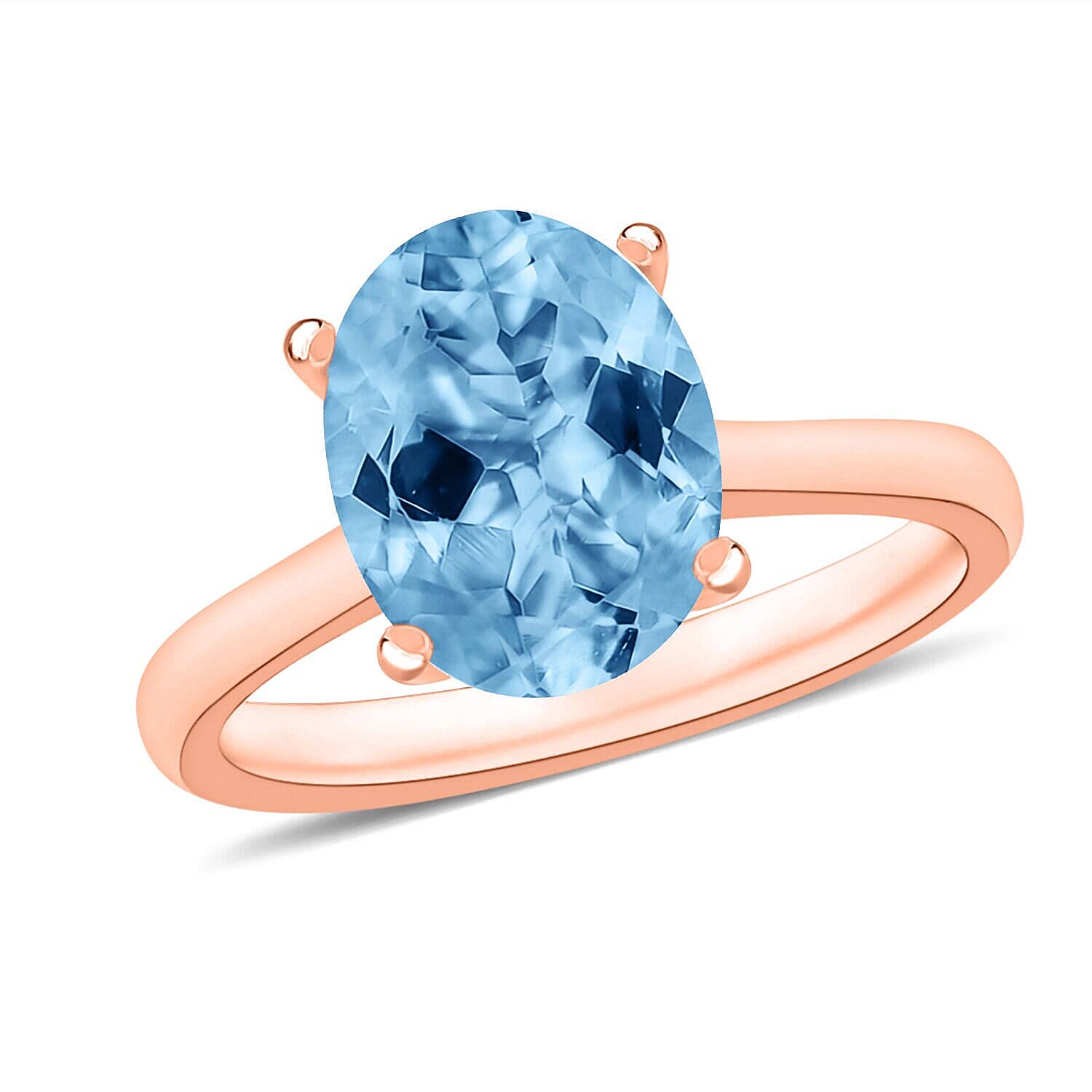 Rhapsody 18K Rose Gold AAAA Santa Maria Aquamarine Solitaire Ring (Size 8.5) 5.50 Grams 2.60 ctw (Del. in 10-12 Days)