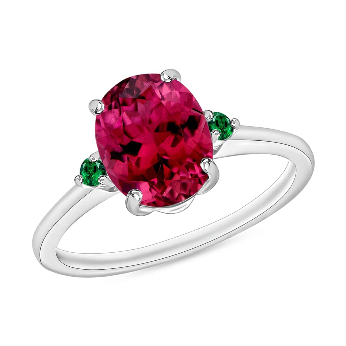 Command attention with the rubellite ring in durable metal. This luxurious gemstone ring unites vivid pink rubellite with deep green emeralds. You'll treasure its striking beauty and enduring craftsmanship for years to come.