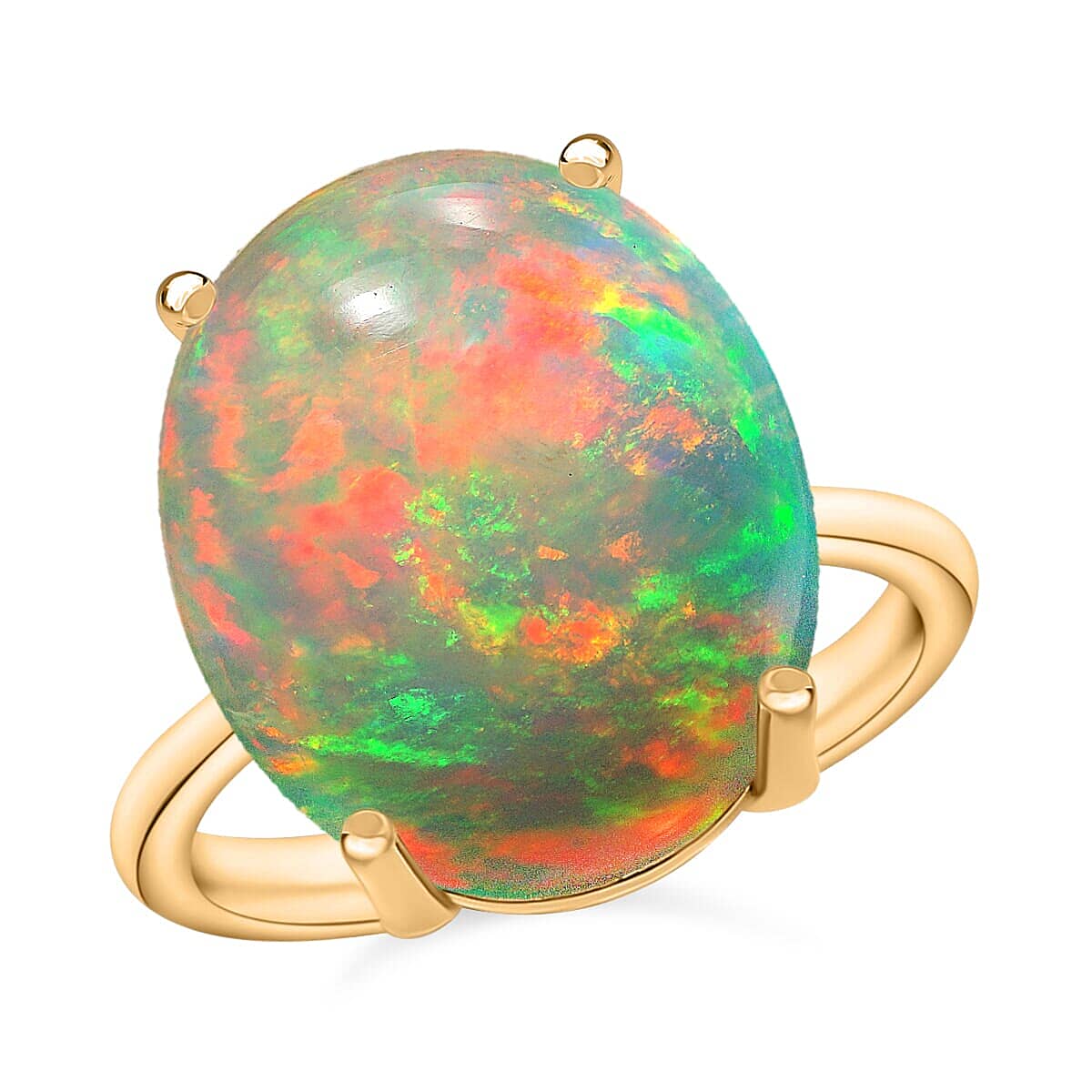 Rhapsody 18K Yellow Gold AAAA Ethiopian Welo Opal Solitaire Ring (Size 6.5) 5.50 Grams 5.00 ctw (Del. in 10-12 Days)