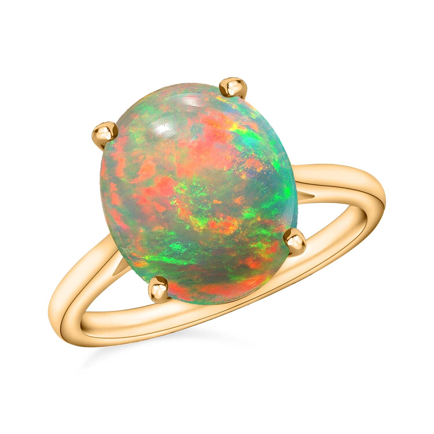 Rhapsody 18K Yellow Gold AAAA Ethiopian Welo Opal Solitaire Ring (Size 9.5) 5.50 Grams 1.80 ctw (Del. in 10-12 Days)