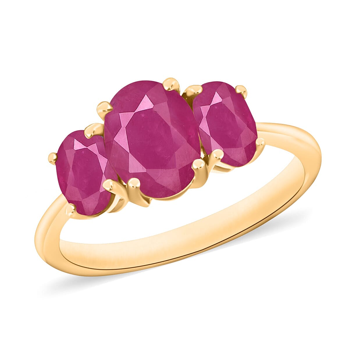 Rhapsody 18K Yellow Gold AAAA Mozambique Ruby 3 Stone Ring (Size 4.0) 5.50 Grams 2.75 ctw