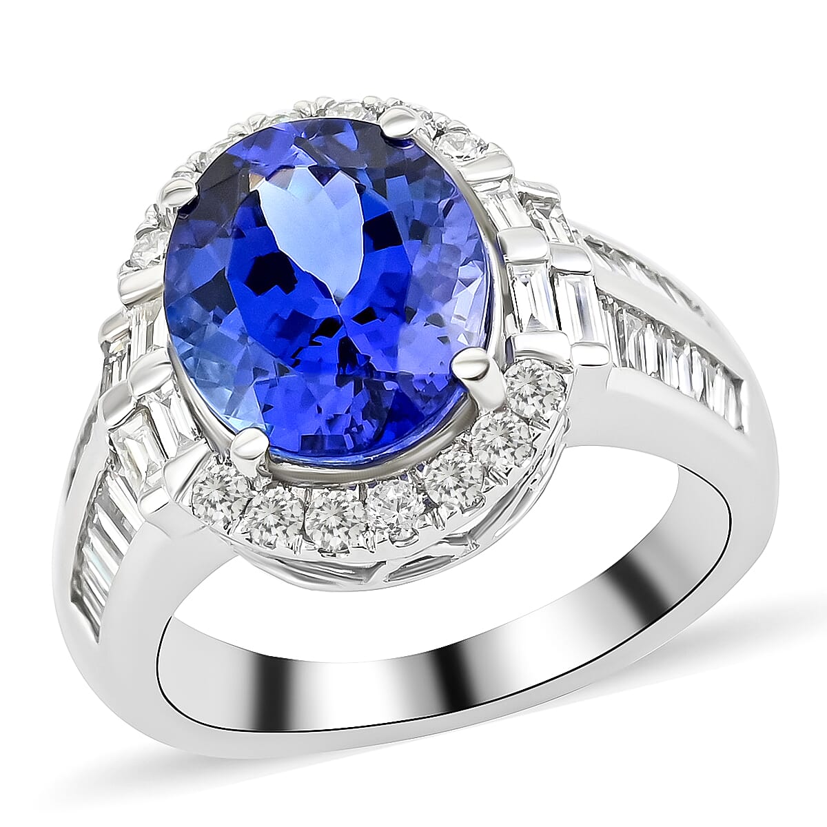 RHAPSODY 5.00 ctw AAAA Tanzanite and Diamond E-F VS Ring in 950 Platinum 10.85 Grams