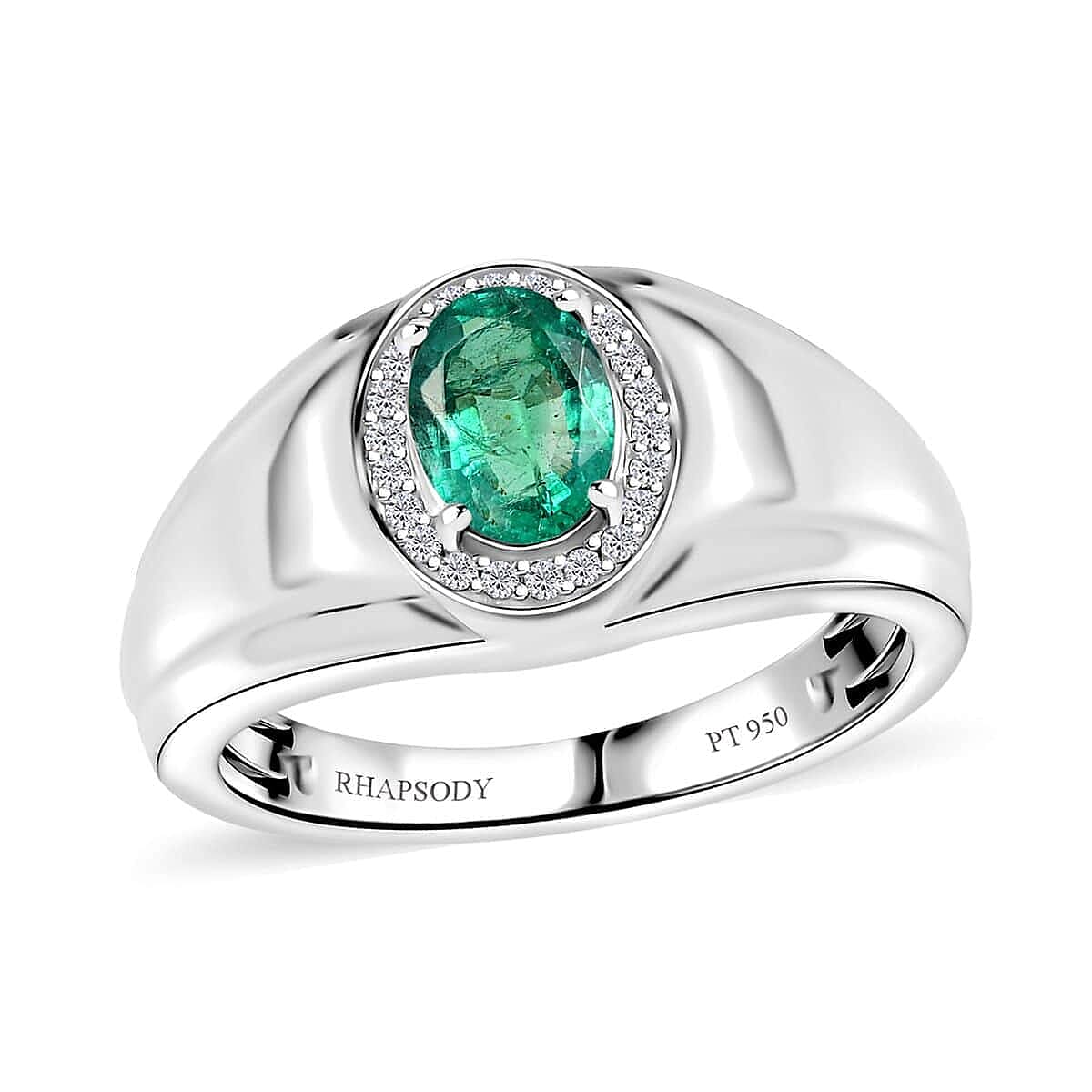 Rhapsody 950 Platinum AAAA Kagem Zambian Emerald and E-F VS Diamond Men's Ring (Size 9.5) 10.75 Grams 1.25 ctw